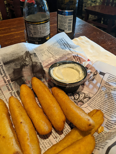 Neat charm and fast service despite it being very busy. Dollar bills cover the walls. Mozzarella sticks had "award winning" under the words on menu. Dont understand that, they were not super. Friendly staff of guys though!