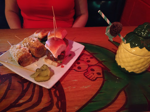 As we live in West Ashley, this is one of our go-to spots. Of all tiki joints weve hit nation-wide, this is a perfect combination of not-to-fussy, not too self-indulgent, but with an emphasis on authentic, boozy, TASTY tiki drinks. The atmosphere is a bit vintage, a bit dive, and a bit of intrigue, read: perfect for sipping a plantars punch or a real pina colada. Note: it will not taste like a pina colada from a chain restaurant---rightly so. In context, the food is great. The tacos and lumpia are worth writing home about, and even the hummus (with goat cheese mixed in) is better than is to be expected for this type of joint. Prices on food and booze are very reasonable, especially since the cocktails are hefty. The only two negatives I can think of are (1) that the crowd changes dramatically throughout the course of an evening, and on any particular day. Not to say theres anything wrong with the variety of crowds, but in one sitting you may be in a nice dim cocktail bar with 30-somethings getting off work, sipping and chatting...which transitions to a dive, with scenesters and cool music blasting...and then, to close out the night, you might find yourself in a raging dance party. And (2), parking is a disaster in all of Avondale. We typically walk, but the few times weve driven and tried to park on a Thursday-Saturday it became a headache. Finally, as a suggestion, it would be cool (and I admit a bit fussy) if they had a cool selection of sipping rhums, in addition to the solid cocktail rums and tequilas already available.