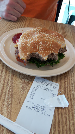 I order a bacon cheese burger and fries. they were kinder of burnt or cooked in old grease. they were dark. my burger was pretty but it had a long brown hair in it. I called and was offered a 10% discount. but I doubt if I will be going back. West Ashley Ye ole fashion. I ate half of my burger already before noticing the hair. I was pissed $12 down the drain