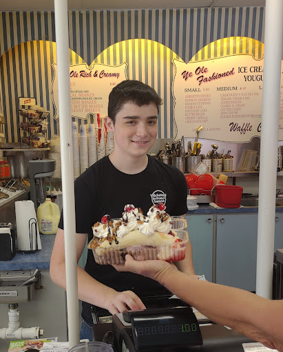 To clarify this would be. 3.5 starts if available. The plusses: Nice people Very Large portions The negatives: The place needs a severe cleaning They use only non dairy whip cream No soft serve. Styrofoam cups The atmosphere is not bad for an icecream shop but I think they can do better. I am sure by the line most people dont mind but others may appreciate my point of view.