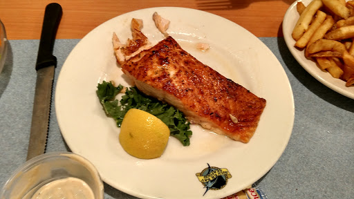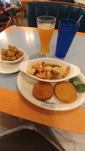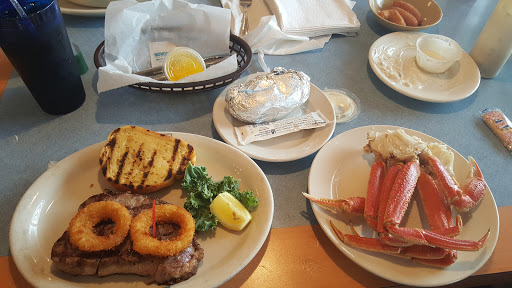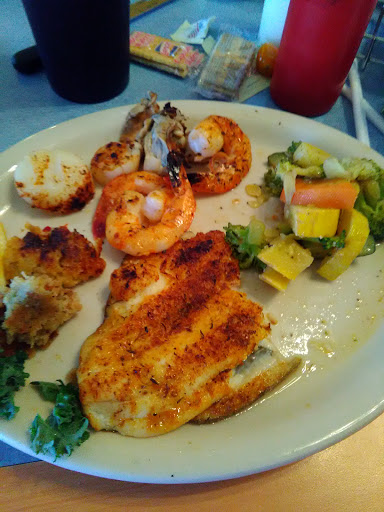 Good service,but horrible seafood. Tuna steaks were butterflied and cooked to death. They were so dryy husband put ketchup ont it just to get it down. Crabcakes were definitely frozen and equally as bad as the tuna. Baked potatoes was cold and old. The hush puppies and bloomin onion were decent. Nice selection of deserts but the food was so bad we were afraid to try them. This place get two thumbs down from me. I cant magine why there are 4 locations of this disgusting food.