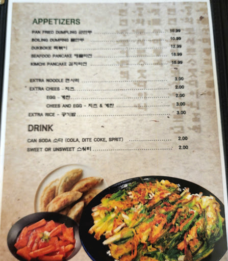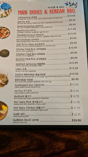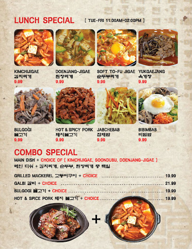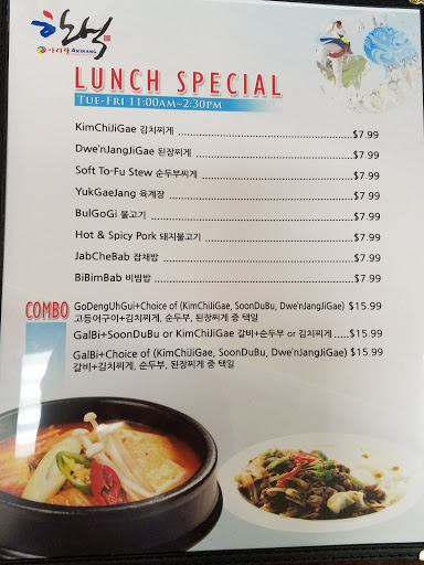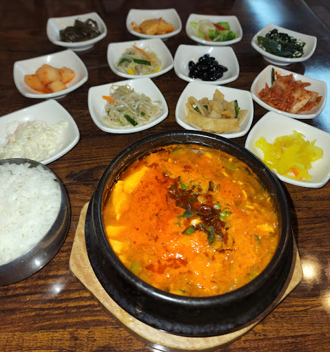 Lots of varieties of kimchi served with every meal. Excellent food. Friendly staff. Best Korean in the area. Be sure to try their seafood soup.