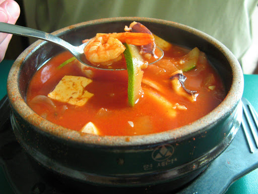 The food was decent. That's about the only pleasant think I can say about this place. The atmosphere was horrid, the service was slow and the "cook" had an awful attitude when I asked for an extra EMPTY cup to share ice cream with a friend. You're much better off with Obok and other Korean restaurants on Decker Blvd. This place is a joke. This place probably gets all it's hype from the drunks that eat their when theyre smashed.