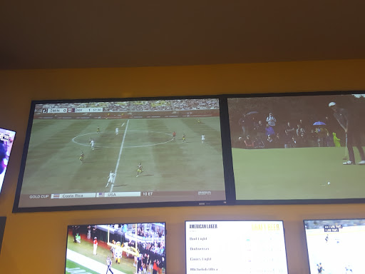 No tv in the bathroom, only one stall!!! Not much people come into this place. The buffalo wild wings by my home town in CA has tv in its bathroom and always jammed packed and popular place. This doesnt feel much as a sports bar kinda feels like a dennys. Poop, and the 2 big tvs look all white and horrible quality and stuff. They should consider looking into more stalls and tv when you go use the bathroom.