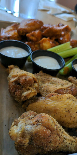 The wings are ok but they hardly put any sauce on them. The sauces are not bold or special. The worst part about the experience is the 100 TVs they have playing on every wall. I could barely have a conversation with my fiancee it was so loud and distracting. If you have ADHD or not I am pretty sure you will feel uncomfortable. Wild wing cafe or Rockaway are better options.