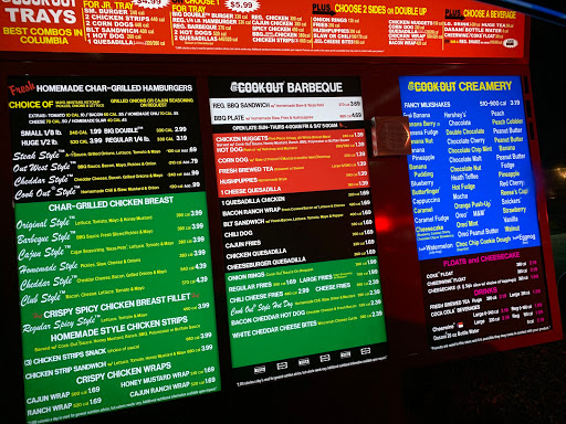 Great drunk food. Get the Cook Out Box. Amazing price-point for what you get! Make sure you check your order before you drive off, they often get it wrong.