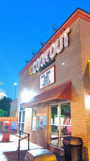 Its a Cookout, so you know what to expect. The food is frozen and thawed, just for you. Service is good and they have 2 drive throughs which keep things moving. This is an absolute hotspot after midnight on weekends because all the drunk Five Points kids come here. Cant tell you how many times Ive watched intoxicated kids stumble into the morning while eating my chicken at 3am. Its not great food because its cookout and its scary because of all the drunk and violent people outside. Get a DD and have them go through the drive through.