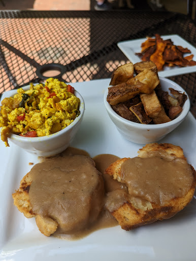 We didnt really hate it, but after two very poor showings by Lambs Bread, itd be unfair to anyone relying on reviews to give it 2 stars. Weve now been twice in 4 months, as my friend is vegan and wanted to give it another shot. Both times the service was appallingly bad, as in "get up and find your own menus after sitting for 15 minutes even when the place is almost empty" bad. This time they had dropped half the menu items, which is generally not a good sign, usually indicates serious money problems or bad management, but they didnt tell us that, so after waiting for menus for 15 minutes in a cafe that was mostly empty, and waiting another 15 to order, we find out that everything we picked out was not available. On top of that, when we did find something to order, parts of it (hash browns) were also unavailable and yet came with what we ordered. Also we were not offered any discount or alternatives to the missing items, just pay up, full price, like it or lump it. I have to say my partner and I are both pretty clearly gay, and given this is twice now that we have sat that and watched other couples and groups come in and get service while we sat there for some time, ignored, we cant help but think our gayness might have something to do with it. Both times out, almost nothing came to our table, not menus, water, food, the check, without one of us having to get up and ask for it. Plus this time when my friend noticed some extra ingredients in her food that were not on the menu, someone came out from the kitchen, apparently "the artiste" (or in Spanish, La Perra, as we called her, lol), and was rather hateful someone might object to her "creative" off-menu efforts, simply because of severe food allergies. The biscuits were hard as rocks, and we forgot to bring our jack hammers. My guess is what we were offered was quite old. Once you see a place slipping this badly, lackadaisical service, half the menu off limits and then even what is supposedly available having unspecified substitutions because of unavailable ingredients (potatoes are not exactly hard to come by unless youre broke), well, its like the end times. Perhaps their biscuits will rise in Rapture, cause they sure aint risin otherwise, lol.