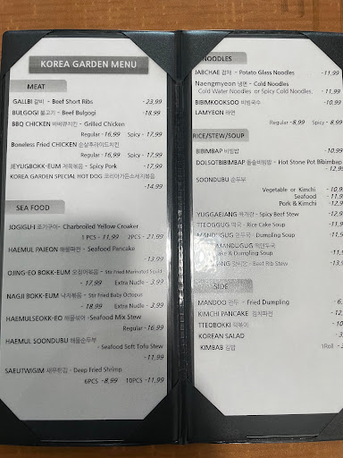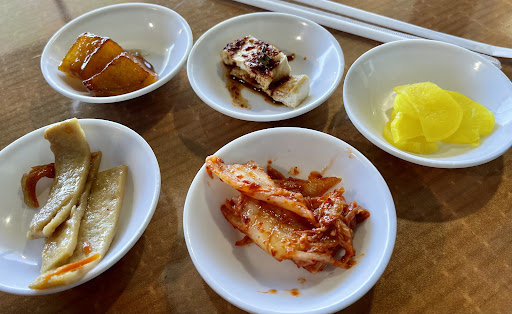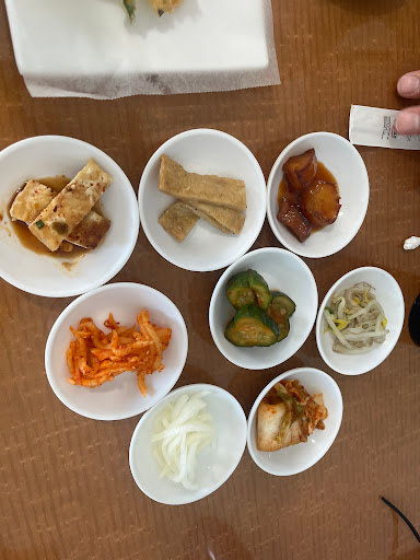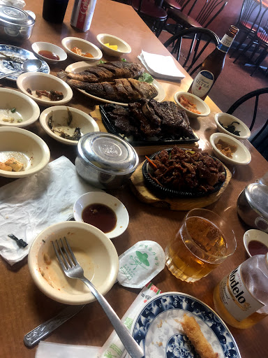 The food here is great. Ive pretty much enjoyed everything there. Bulgugi, Kalbi, bibimbap, and jajangmyun are among my favorites. If you like seafood the soft tofu seafood soup is good. The grilled mackerel is also good. When hot, the cold, spicy arrow root noodles is awesome. All entrees are served with banchan(side dishes of kimchi, vegetables, etc) The only negative is not having hot water in the bathrooms.