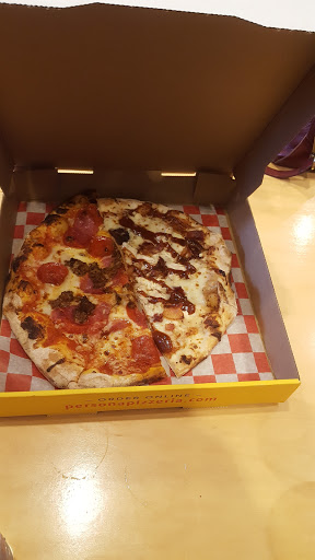 Ok, but far better pizza in town. Notice that the pies look nothing like the picture on the menu ? The oie you see is actually with EXTRA cheese. Without extra, very skinmy on cheese. Crust too thick with no rims (unlike the pic)... seems they no longer know how to plow out the dough to be thin in the middle and have rims. Ingredients are pretty good, though a little salty. The main issue is lack of skill/desire to make the oies like the menu oicture, which is looks exactly how this style should look.