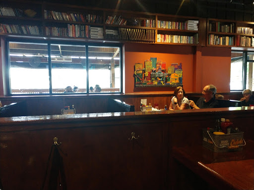 I had a craving for some pizza and didnt want the default mellow mushroom so I did a search and came across this place. My girlfriend and I went in on a Friday night to check it out. Wow we were instantly impressed. Its a neat set up with the walls covered in books and movies and dvds (they should add old board games to the collection too). Plenty of TVs to watch the gamecocks on and not too noisy. Any way our waitress was really friendly, the stuffed pepper appetizer was awesome, the beer selection was great and I think $3 for all draft beers is a great deal. We each ordered a different pizza and couldnt decide whos was better. Definitely spring for the finishing oil on the crust its delish! We will definitely be back soon because the rest of the menu looked great too. This is a great local business!