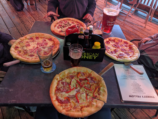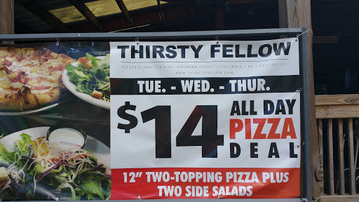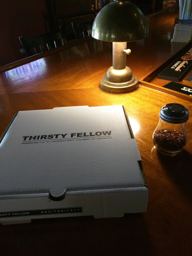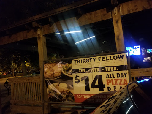 Some friends and I stopped by the Thirsty Fellow for lunch today (Friday). We were very impressed with the decor. It was not at all what we were expecting from the outside. One of my friends and I split the lunch special, 2 house salads and a 2 topping small pizza for $11. Dont let small pizza throw you off. We were stuffed by the time we left. Not only that, the owner accidently burned the pizza crust so they offered to make us another one. The pizza was barely burned so we declined. The owner came out himself and apologized saying that we would have to come back and let him redeem himself. Then when it was time to pay, our meal was free of charge! As I said before, the pizza was barely burned and we devoured it! Their entire menu looks great, they are building a nice deck outside and they have $3 pints and $12 pitchers all the time. I will definitely be back!