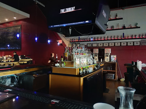This establishment is unusual. For a place which serves sushi its interior is humongous--high ceiling and ample table spacing. Im accustomed to eating sushi in confined settings. Yet with all the spacious interior, availability of unoccupied tables around mine, and no television turned on, the place was loud due to accoustic noise, I suppose. There were numerous college students eating here, and it seemed to serve as a hangout. The food was okay, nothing special. Unfortunately the sushi was cool, not cold, but I didnt become ill. This restaurant seems suitable for college students, not business visitors. Service was mediocre.