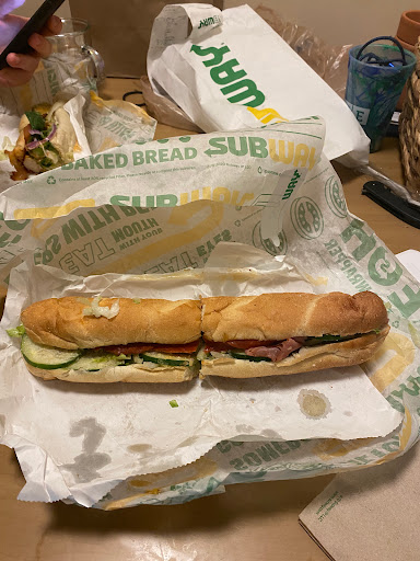 Its Subway, a known product. This location doesnt skimp on the extras, it is clean and the staff is friendly.