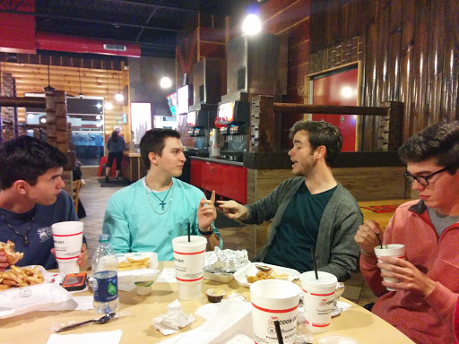 Great burgers! A little disappointed in the sides, except for the fries. I never dined in, but it seemed like a large restaurant. The drive thru seems a bit tricky. Be cautious for other drivers.