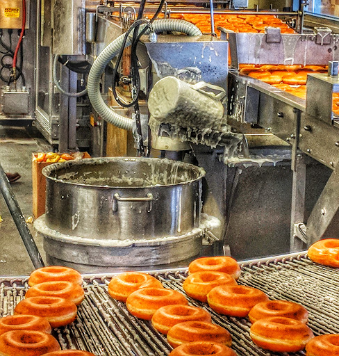 Its krispy kreme. Its fresh and u get to watch them make the doughnuts.