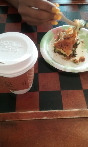 This is a pretty good coffee shop. Ive only been here once, but Ill try it again. Their coffee preparation is at least on par with Starbucks, in terms of lattes, if not slightly better. However, it appears that they do make food there and Ill tell you what, the last time I was here they made some sort of tomato pie and it smelled delicious. I have a feeling their food is awesome, but I havent tried it yet. Ill update this review once Ive ate something there. I did have their zucchini bread and that was pretty good. Bottom line is, other than Starbucks and Lulus (I believe thats what its called), its the only independent show in town.