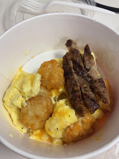 Drive thru and outdoor dining. High traffic area. Super fast and friendly service