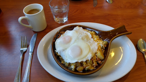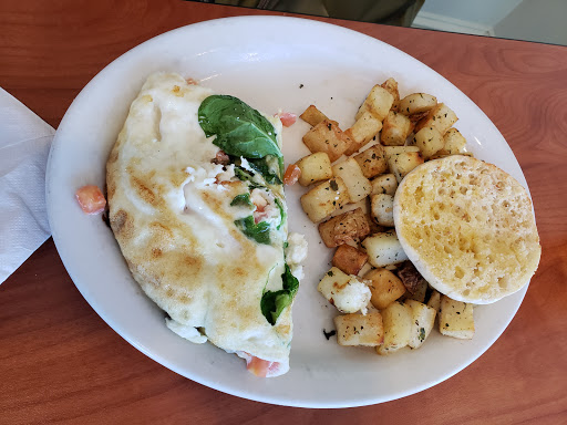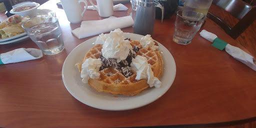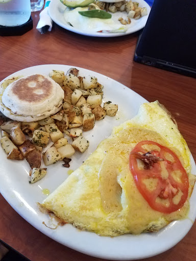 Breakfast was tasty. I had scrambled eggs covered with bacon, sausage and cheese along with the potatoes. Quite tasty. They honored my request to leave the mushrooms off. My wife had 2 link sausages (which were the largest I have seen), 2 fried eggs and french toast. She loved the taste of the french toast. Was not crowded when we got there Sunday morning at 9:50 but by 10:15 people were standing and waiting to get in. I thought the serve was also very good also. Recommend.