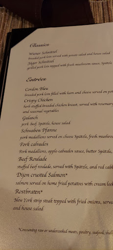 If youre looking for authentic German fare. This is not the place for you. However, if youre looking for "upscale" Americanized reimagined takes on German food, youre in the right place. Paired with an almost French provincial-type decor, its not the kind of German cusine I was anticipating and therefore found it quite disappointing. Therefore, let this be fair warning to those expecting authentic home-style German food; try someplace else as this wont be what youre looking for.