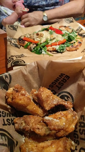 Were big into wings and were hoping this might be a go-to place for us in the future. Sadly, we wont be making that trip again. The short story: The wings themselves were okay - not the best, but far from the worst. The sauces we tried were okay, but had NO HEAT, even though we ordered them "hot" (supposedly 12,000 scoville units on their menu). Service was terrible though and the extra charges were ridiculous. The longer version: We went on a Sunday hoping to grab some beers and wings to wind down our weekend. Yes, I know SC has some weird laws about Sunday alcohol sales, but more cities (and I was under the impression that Greer was among them) passed local ordinances allowing restaurants to serve on Sundays. We were seated and our waiter came to take our drink order. I asked if there were any drink specials. He seemed really confused and then told me, "Its Sunday" like I was an idiot. I understand hes a young person and may not have entirely gotten the whole interacting with customers thing down, but a brief, "Im sorry, but we cant serve alcohol on Sundays," would have set a much better tone for the meal, because it didnt get any better. I never imagined I would complain about a restaurant being over-staffed, but clearly I should never say never. There were probably 8 servers with at most that many tables. All of the servers were very young and didnt seem to have been trained very well. They mostly stood around joking or singing along to the music playing in the background while ignoring customers with empty glasses. We ordered buffalo chicken taco bites to start with. They were fairly tasty, but if there was chicken in there it had been pureed somewhere along the way. They were mostly just fried mini taco shells covered in hot sauce, which, while surprisingly tasty, wasnt exactly worth the $5.99 for the quantity we got. We followed up with an order of 10 wings. The menu mentioned a 99 cent charge for flavors, which I guess having eaten at restaurants that serve wings before, I mistakenly interpreted as 99 cents for extra flavors in your order. I understand an upcharge for extra flavors (though why not just limit the number of flavors based on how many wings are ordered, like most wing places?), but upon the arrival of our check, it turns out that it was 99 cents for EACH SAUCE. So, I guess the menu price is only accurate if you order plain wings. However, they did have a good variety of wing flavors to choose from. You pick a flavor and then a "heat index," so we went with General Tsos (which our server tried to correct my husbands pronunciation of which was 1) incorrect in its own right and 2) rude) and Maui, a teriyaki with sweet mustard sauce, both with a heat index of "hot." The wings might have been hot to someone who thinks that mayonnaise is spicy. My best guess is that the kitchen staff is as young and poorly trained as the wait staff, and have no clue what a scoville unit is. We also had no celery or bleu cheese, which were only brought out when we inquired with the only person we saw who was clearly over the age of 20. We walked out at $22 with the tip having ordered waters, a small (and mostly meatless as far I could tell) appetizer, and an order of 10 okay-ish but completely not hot wings. Overall, it was just really disappointing. I cut the kid who was serving us a bit of slack because he clearly had simply never been taught anything about customer service. Im all for giving kids a chance (my first job was waiting tables, and it was a great experience), but if management cant train them to do the basics like talking to customers politely, then theres no hope for them or the restaurant. I sincerely hope that it was just a B-crew day, but since their B-crew was that bad, we wont try again hoping for the A-crew.