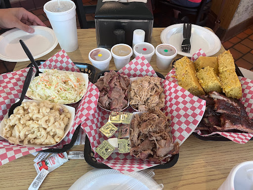 The best bbq restaurant in the area! We loved it so much we ate there twice on vacation. The ribs melt in your mouth and is making my mouth water just thinking about them! My husband loves north carolina style pulled pork and he said this was just as good. They have a nice array of sauces to please everyone. While we were there people came in to just purchase sides to take home and have with their family dinners! Loved reading all the names written on the walls. Wished they still let customers do that cuz we would be proud to say we were there!