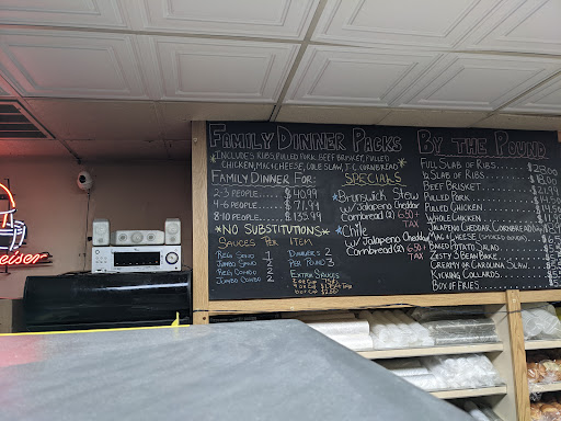 Took our family of five here. The ribs, are, amazing!!!! Usually I have a ton of sauce on them. But these were so freakin good that I didnt sauce any of them. The dry rub they use is phenomenal!!! We had a full rack of ribs dinner, a pulled pork dinner plate, two mac & cheese kids meals and a rib kids meal. The kids meals where only $3.99 with a drink. All together we spent just over $50. Fantastic deal for a family. Honesty these ribs are so amazing!! Best Ive ever had!!! Atmosphere felt like a hole in the wall place, some flies flying around but if that bothers you just get it to go. It was a genuine BBQ joint atmosphere.