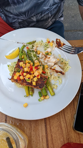 I ordered the Carolina Crab cakes and they were delicious. I dont enjoy most seafood because most restaurants dont season the meat well and most dishes end up bland. Well this restaurant has shown they know how to prepare a dish. These were extremely tasty and a great portion size. Expect a wait without a reservation if youd like to sit outside. We sat at the bar as we ate and enjoyed the atmosphere until our table was ready.