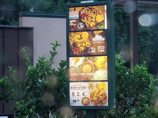 Went on a slow day, two cars in drive thru... We were told to pull up and wait for chicken to finish, thats fine, love that idea. Then we were forgotten and three other cars went after us and an employee came out asking us why we were here, replied waiting on chicken to finish supposedly. She apologized, went back and we waited another ten-ish minutes (about 20min total now sitting at the curb), then were brought a VERY cold shrimp po-boy and the honey spicy chicken with no sauce on it... So basically just spicy chicken. I considered walking in and refilling the drink I had finished ten minutes ago, but nah, Im never coming back here, so Ill go to the beach and forget this trip to get lunch and get some legit seafood for dinner :) not waste the day or beach time worrying about the poorly-staffed Popeyes.