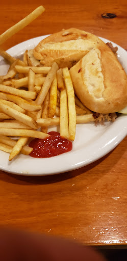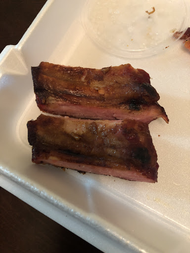 BAD.okay so we go into this place and they have tons of awards displyed.... i dont know who they beat in any cookoff because their food was hoorible. They cook their pork ribs way way way too long... okay so people like them "falling off the bone" well these were like mush... i dont even think they season the ribs when cooking because they were bland and soft and gross. Absolutely no kind of texture whatsoever. moving on. the corn was deformed and dry. like it came out of the freezer and sat out for a week... the cornbread had NO FLAVOR. you could tell that it was from a box. the fries sadly were the best thing i had.. my girlfriend got the pulled pork sandwich that somehow " put them on the map "... whatever that means... it was a dry bun with dry and nasty looking pulled pork.. and i overheard the "chef" bragging about all the places he had worked and how he had done all this and that... when we got the check they had a comment card. and i clearly expressed my disappointment the whole staff was crowded around reading it seeing how they were doing nothing because the place was dead at lunchtime... and the chef couldnt even come over to say anything he sends the poor waitress back to the table to say how sorry they were that we werent satisfied.. i thought that was pretty pathetic.. so from my side of things. the food was terrible. the service was average.. BLAND BBQ IS NOT GOOD BBQ...