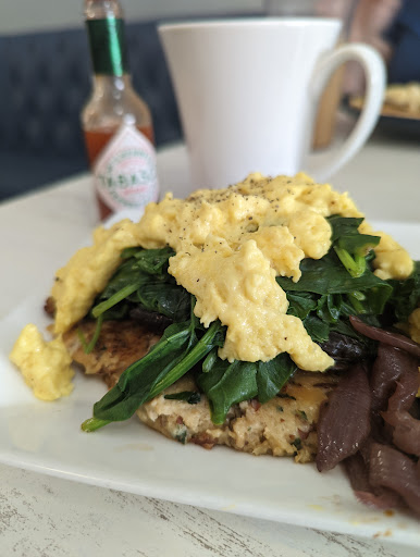 My husband and I came here because I read the other great reviews but overall we were underwhelmed. We came on a Thursday morning, so it wasnt too busy, but the hostess refused to seat us outside because there was only one table left and they needed to save it "in case" a party of 6 came. (It sat empty the whole time we were there.) The food was tasty but I thought it was overpriced and the portions were stingy. I had french toast, which was fine, but it was a $2 upcharge to get fruit on it, and I ended up with only a small handful of berries. I think it would have been really pitiful without the fruit, especially for the price. My husband got crab benedict, and could barely taste any crab. Also had to pay another $2 to get a side of hash browns. Again, the food was decent, but it seemed like they were cutting corners and upcharging you at every opportunity. They had an extensive menu of coffee drinks, which I didnt try but which looked good, so maybe come here if youre just looking to get a drink. But if you are looking for a good breakfast to start your day, try somewhere else.