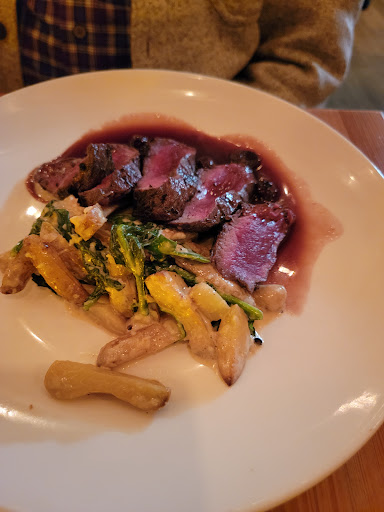 Amazing time! We were seated at the "community table" in front of the bar and it made for the perfect evening. The calamari is the best that I have had and the marinara sauce was superb. I did not bother combining the two. I was fortunate enough to have a venison special and it was cooked and seasoned to perfection. The staff, especially John at the bar, were very helpful and extremely professional at their craft. If you are on Johns Island this is a must for dinner. Local food, Farm to table Italian.