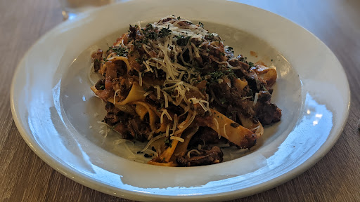 Dont bother eating in Charleston. The food here is excellent (though what we had got a tad salty towards the end of the meal), and the waitstaff was wonderful. Very friendly. My fiancee is a celiac (gluten-intolerance) and our server was instantly familiar. She went to the kitchen and talked to the chef three times to make sure what she got was gluten-free. My finacee had the risotto and I had the sweet potato ravioli. Do try the tomato/mozzarella/basil salad with the balsamic reduction. YUMMY! We both very much enjoyed ourselves, and the place has a odd diner-esque atmosphere, what with the colorful walls, some booth-like seating and the long rows of mirrors on one wall. Highly recommended, excellent value (most entrees were $10-13).