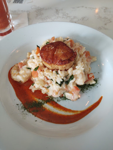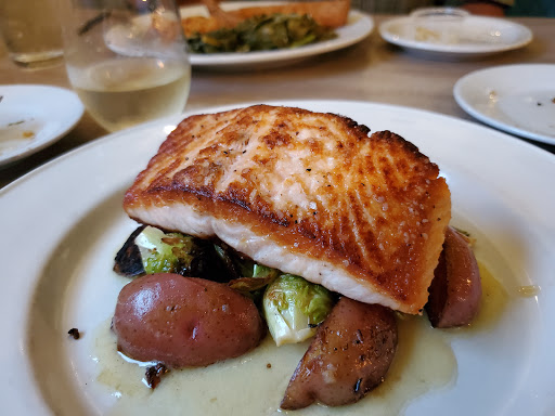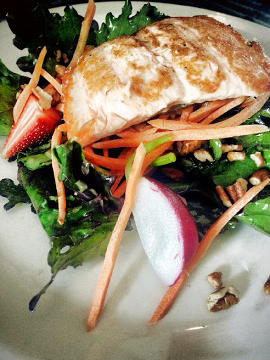 Service was amazing!! Billy was on it! Dined here last night based on their health conscious menu. Looked in advance and decided to get the grilled marinated chicken. However, once I arrived I saw their specials ... A grilled salmon topped with maple walnuts on a bed of sweet potato risotto along with spinach and tomatoes. I went for it. Much to my surprise I was served an almost overflowing bowl of risotto with a piece of salmon on top (that didnt look to grilled). And the fish was covered in maple walnuts. I wish Id stuck with the chicken.