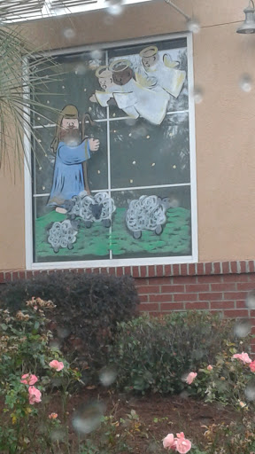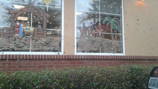 Wow! What Chick-fil-a do you know that paints the nativity scene on their windows?Hot and tasty chicken nuggets and a chicken sandwich were our menu items. The customer service was great. Its a clean restaurant with an indoor playground so parents can watch their children play as they eat. Good job Steve and Christian!