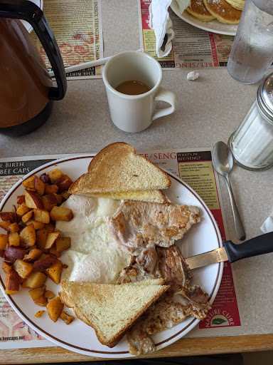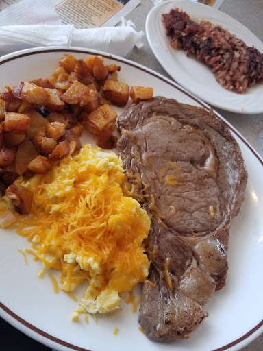 The country Fried steak was a hockey puck well overcooked...the home fries were dam near raw...asked for scrambled with cheese received cheese spread on top of eggs...bacon was as close to raw as it could get....air-conditioning doesnt work they have floor fans running...wow worst experience Ive had in a restaurant!