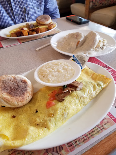 Ive eaten at most of the breakfast places within a few miles, and this is my favorite. The food is good. The restaurant is the only one that actually toasts a bagel well done so that I dont have to send it back. The home fried have good flavor and arent greasy. The grits are the real Southern deal. Service is personal and friendly -- very attentive. The prices are the best in the area, making the overall value better than average. The acoustics are good, which is a plus in season, when most places are crowded and noisy.
