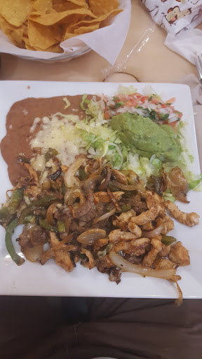 Great Mexican Food. Very large portion for a cheap price. Free chips and salsa.