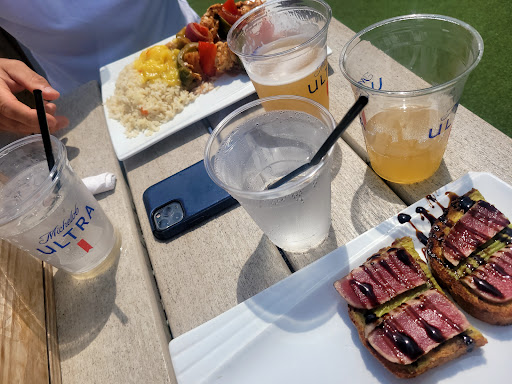 Stopped in here after Beach--House decided they no longer wanted to use military IDs as acceptable forms of identification and one the members of our group did not have their drivers license, EVEN THOUGH 2 hours earlier they were served alcohol with that ID. Oh well, I digress...Landshark was a great little spot to just mosey into. Friendly service, great atmosphere/music, not entirely a giant place but I think that it makes it even better. It was a somewhat chilly day and the patio had overhead heat lamps that worked just great even with the wind coming off the beach. Great view. Food was brought out perfectly and timely, and not to mention very delicious! Drinks were fantastic, dont think ive ever enjoyed a shot in my life (had the "Brain Dart" which is pretty hot goin down!). Definitely highly recommend!