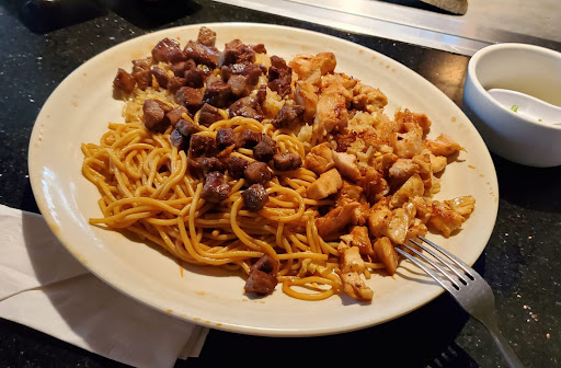 It was pretty good, but could have been better. When we first got seated the bus pan pushcart was directly behind us in a narrow walkway. Instead of moving it from behind us and giving us more room, more people just kept using it. The hostess wouldnt let us move to the middle of the table because it wasnt full even though there were four of us. We moved anyway and it was fine. I used to work at a Japanese steakhouse and it was actually standard protocol to fill in side by side, not on the opposite sides of the table. We almost left because of this because we were paying too much to be in a cramped working area, especially for a four person party. The waitress was super nice, but disappeared during the entire cooking process which was almost an hour. I had to flag down a manager to get a drink refill. The whole process took almost 2 1/2 hours. I understand if you sit at the cooking table it takes a while, but it seemed to drag a bit. It wasnt super busy either. The food was great and the chef was awesome,only thing I thought was odd was the lack of veggies in the rice and you dont get a great amount of veggies. You end up getting a huge plate of carbs with little veggie or protein. If you go with someone I recommend getting a combination and sharing. Youll still have leftovers! Also the soup was virtually flavorless and although the ginger dressing was good, it was runny. The best part of the meal was the green apple sake.