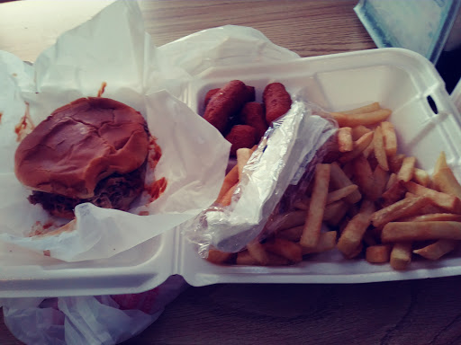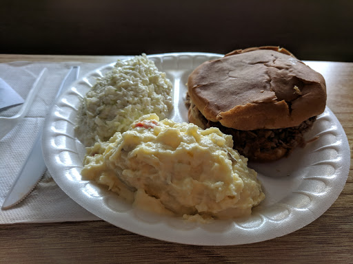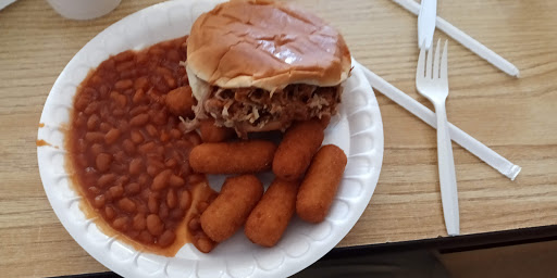 This is a little place that is full of great food. Im from Kansas City MO and trust me I know good barbque when I see it. I had the jumbo sandwich and beans. It was great. But I noticed they didnt have any ribs. I asked if they did and she said no. It was the first time ever I have ever been to a bar b que place that didnt have ribs. Strange in a way but hey to each their own. Over all this place is great and I would go back and eat there again. Its no Kansas City Mo Bar b que but its got a lot of flavor.