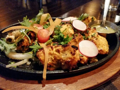 Four of us came to this Indian restaurant after learning about their lunch buffet. The interior was large, spacious, airy, and neatly organized. The buffet area was tucked against a well-lit corner, and the ambiance was quiet and calm. There were only a few customers at the restaurant during that time, but the buffet items were still fully stocked and aesthetically pleasing. I particularly enjoyed the Cabbage and Potato, Tadoori Chicken, Goat Curry, Chicken Tikka Masala, Vegetarian Biryani, Saag, Daal and Navaratan Korma. The curry and vegetarian consistencies were thick, creamy, complex, and highly addictive. I really enjoyed their Saag, Cabbage and Potato, and Daal, and returned several times for them. Spicy hot! Among the meat items, the Goat Curry was particularly impressive, as the goat was tender, meaty, flavorful, and the curry striking. Additionally, the Chicken items were also moist and accentuated by a solid hint of smoke in every bite. Both rice options were pretty awesome too. Altogether, the food had a complicated flare of spices that were not too greasy or salty, so nothing was compromised or deviated from my expectations. Service was fully attentive, kind, and responsive. Our servings of delicious naan were replenished several times, and the water never reached the bottom of our glass. Overall, the buffet had a good balance of vegetarian and meat choices to choose from, and the quality was underscored by freshness, hot temperature, authentic flavors, and refinement. Most of all, I was pleasantly surprised by the spicy fare, a rare find amongst Indian buffets. My favorite Indian buffet till date, hands down. Unfortunately, I might not visit them sooner as I live 3hrs away.