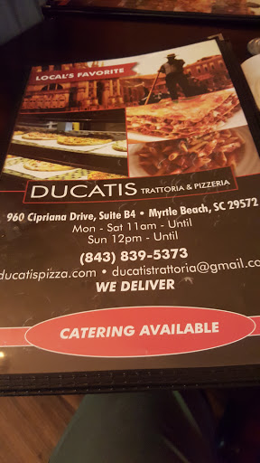 Went for dinner on Monday night. Nice atmosphere and great service. Was seated right away and our waitress answered all our questions and gave us great service. The food was amazing. I would recommend this place to anyone who lives in or is visiting the Myrtle Beach area. Best Italian food I have found in Myrtle Beach, hands down, and the prices were very reasonable especially for how good the food was. I will definitely come back. I cant wait to try something different off the huge menu.