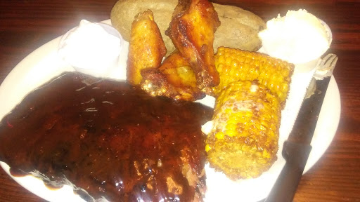 Ill start off by saying the ribs were AMAZING! However, the rest of the visit was far from amazing. The food (aside from the ribs) was mediocre at best and the service was terrible. Our waiter (Korey) told us it was "inconvenient and time consuming" for our seven year old to order a milkshake and he asked us to order something else for her do drink! It took 45 minutes to get our food after we ordered it and the rest of our visit we had to ask other staff members for assistance because he didnt come back to check on us and see if we needed anything. After paying our hefty bill (we had a table of 7 people)...we were leaving the restaurant when my step dad (as well as 2 other customers) tripped on the broom handle, which was sticking out into the walkway, and fell to the floor.(one of them was a small child thay might have been 5 or 6 years old) The waiter that was standing by when this happened told my step dad he should "pay more attention to where he is walking". Seriously?!? We will NEVER return to this restaurant.