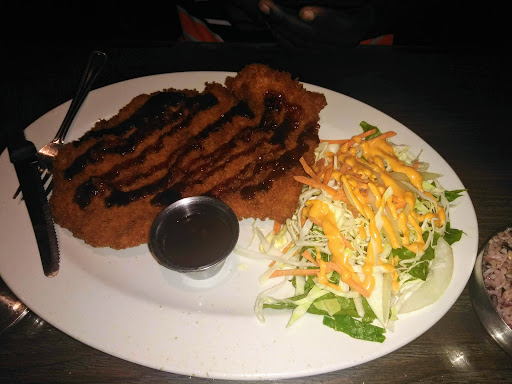 My brother and I heard a lot about 843 and thought we would give it a try for lunch. Instead of the Korean BBQ (cook your own at the table), we opted for a regular lunch. We are going to try the restaurant again for dinner in hopes of having a better experience. As empty as the restaurant was, we had to wave at our server from across the room to ask for items, half of which he would actually remember to bring us. Service was slow, and there were not very many of us in the restaurant as it was early for a Saturday. The appetizers were very good- we had the Gimbap and the ManDu. We didnt have any plates, so all four of us hovered our food over our napkins. We finally asked for plates and two of us begged for forks (we were going to starve with chopsticks). The egg drop soup followed, and the broth had a good flavor. However, the white and green onions were cut in a way that made it hard to eat. We literally had long shoots of green onion and big chunks of raw, white onion. We just drank the broth. Each of us ordered a different main dish, and we all agreed that the food was mediocre at best. I ordered the Jajangmyeon, which is noodles with black bean sauce and (according to the menu) pork. It was a HUGE portion! The noodles and sauce were very good, and so was the one, tiny piece of pork I had. I searched thru my bowl to make sure I didnt miss anything, but I seriously had one small piece of pork in my meal. My daughter had the chicken Katsu, which is chicken that is fried (not deep fried like fried chicken) and has katsu sauce on top. It was served to her as one giant portion, and she was given a knife to use with her chopsticks... so she borrowed my fork since the server did not come back again until he brought our check. Her food was garnished with raw vegetables piled on her plate, which we thought was odd: broccoli, onion strips, carrots.