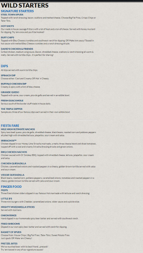 1st: I participated in bike ride called Hogsandrags from Fayetteville to wild wings for so many great causes, once we arrived our order was taken, so we waited and waited and was told our orders will be coming shortly, now keep in mind this was a BIG event they knew this was coming, after seeing folks getting dessert and to go boxes we kept asking about our orders well needless to say after hour and half of waiting they notice 3 tables still not eating now the RUSH had others waiters, other waitress, managers oh and the waitress who took our order could not be found, for a moment we thought she QUIT, I dont blame the Hogsandrag event staff, but I fault the the wild wing staff. Get in together Wild wings... Heres ideal if anyone from management notice tables not get there food find out why, that may require you to walk around and check,