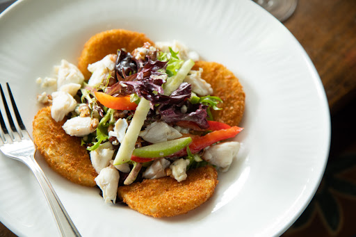 I dont like to give ratings of 5 but I was tempted here. My wife and I were there for lunch on April 30, 2012. I was somewhat leery about the tomato, crab and jalapeño soup because I thought it might be too spicy for me. Our server brought a small amount for my wife and I to sample. It was delicious and I ordered it. My wife chose the crab bisque which was also quite good. We both has a special which was crusted snapper over potatoes, beets, and cherry tomatoes. We were both impressed. We finished by sharing a bread pudding with home made vanilla ice cream with a caramel sauce drizzled over the top. My wife chose the desert. Im not a fan of bread pudding but I thought this was very good. The total price was quite reasonable considering the quality.