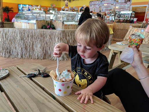 Great homemade ice cream with a fun tropical island groove ! They have many ice cream options to choose from. Great service and they have indoor picnic tables to eat at with friends and family. They even have adult popsicles ( margarita, cosmopolitan, and mojito) which are basically a frozen adult beverage on a popsicle stick with the same shot of alcohol ratio that the drink would be seeved with at a bar.