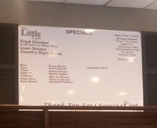 I eat here often. I love the fried chicken, collard greens, fried okra, etc. If your from the south, this is your place. If your not, you should try some of the southern charm that is The Little Cafe. Get some tea and try some cheese cake. Its the best.