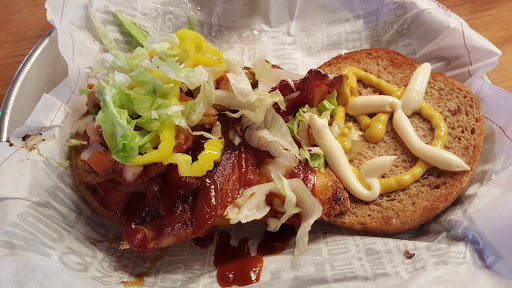 Good franchise burger place, with plenty of toppings and sauces available. Fuddruckers has a build-your-own-burger bar, with numerous additions to choose from. Other than premium toppings like mushrooms and bacon that must be added during cooking, the bar has whatever you might want to put on a sandwich. The burgers themselves are big and fresh, served on buns made in house. After dinner, grab some cookies or sweet rolls from the bakery counter. The cookies are always fresh, and surprisingly good for just an addition to a burger restaurant.